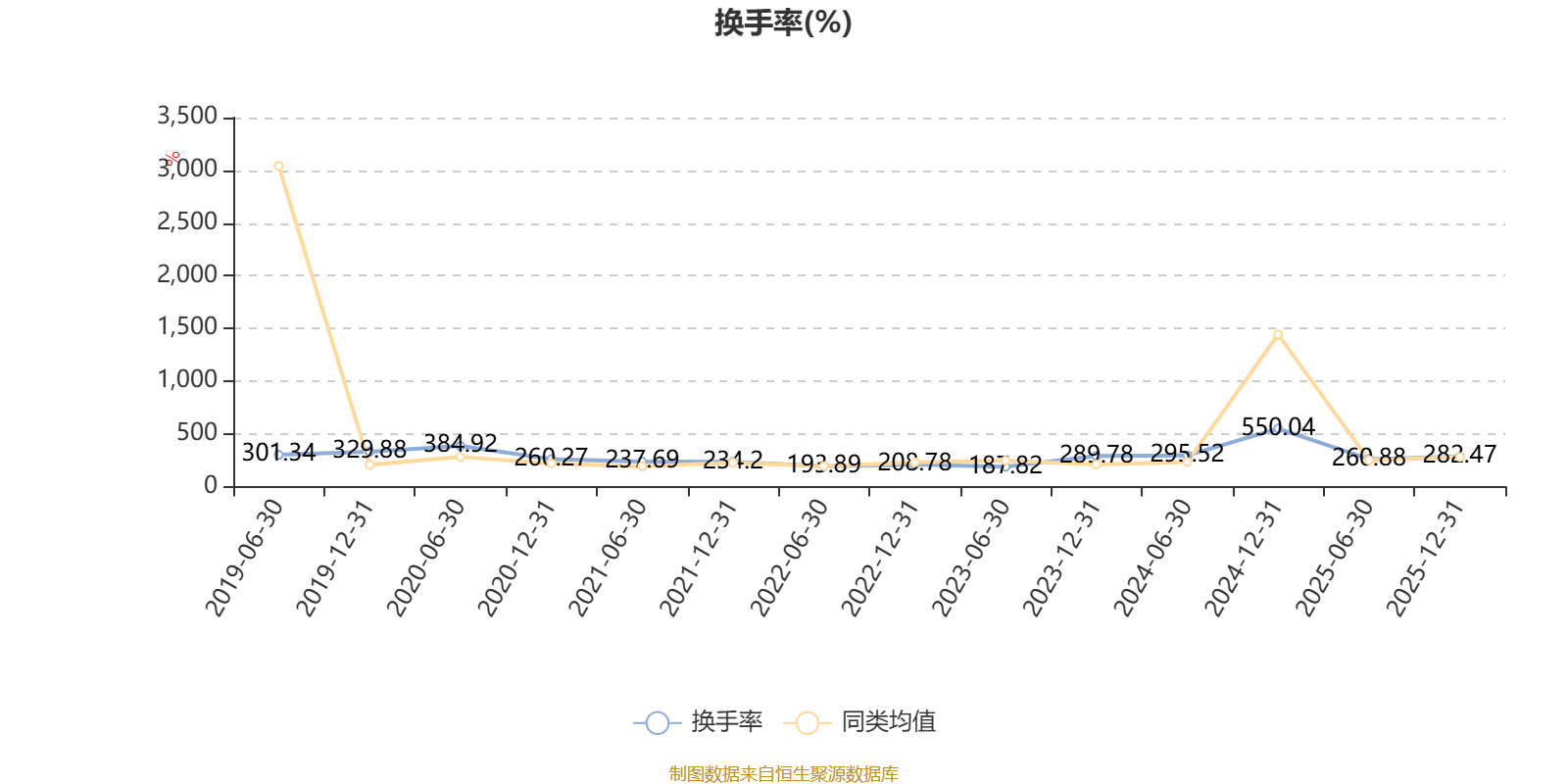 截至2025年12月31日,基金最近一年换手率约541.16%,持续1年高于同类均值。
