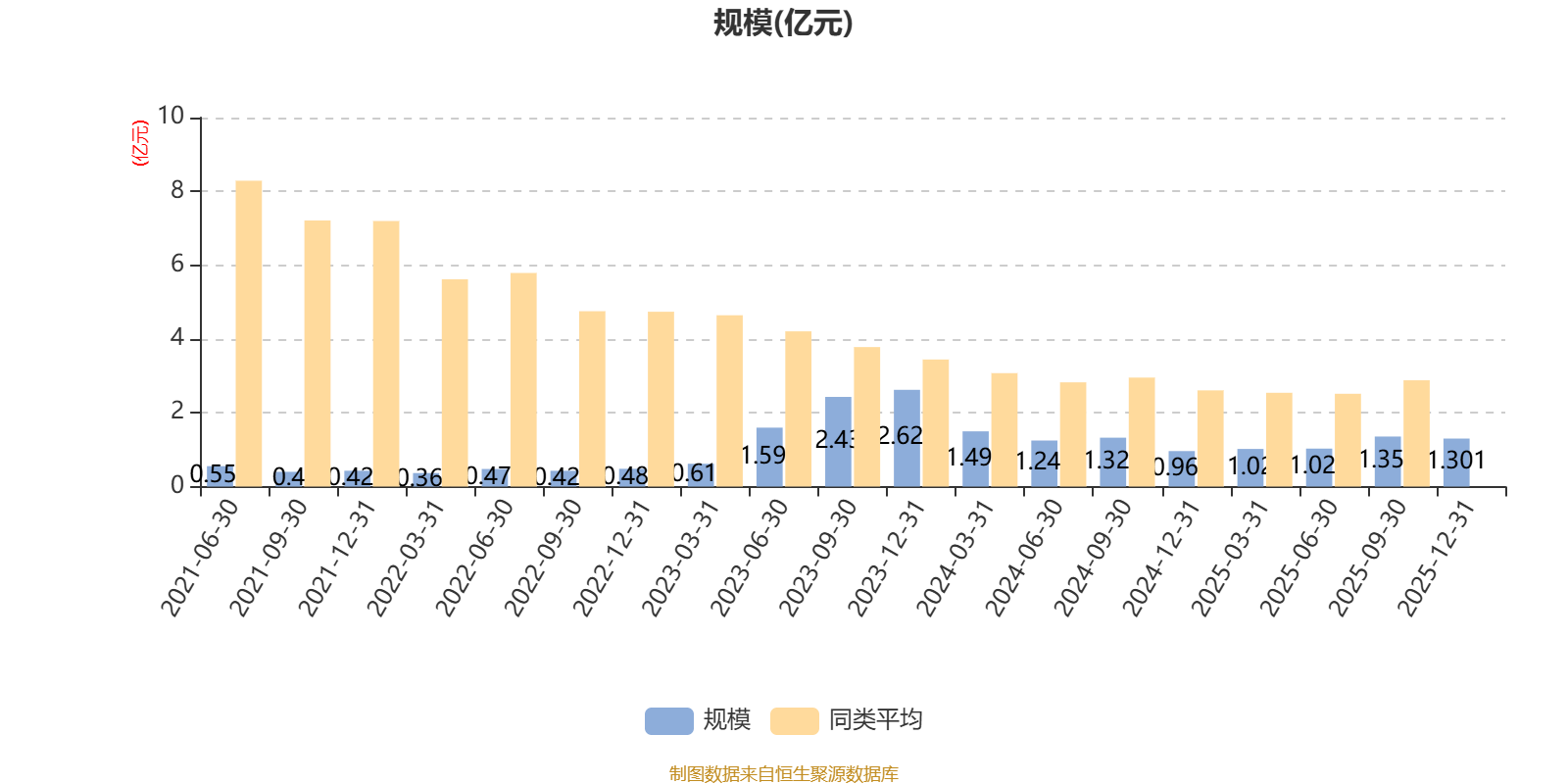 AI基金中邮未来成长混合A(010447)披露2025年年报,2025年基金利润2525.55万元,加权平均基金份额本期利润0.3033元。报告期内,基金净值增长率为27.65%,截至2025年末,基金规模为1.3亿元。