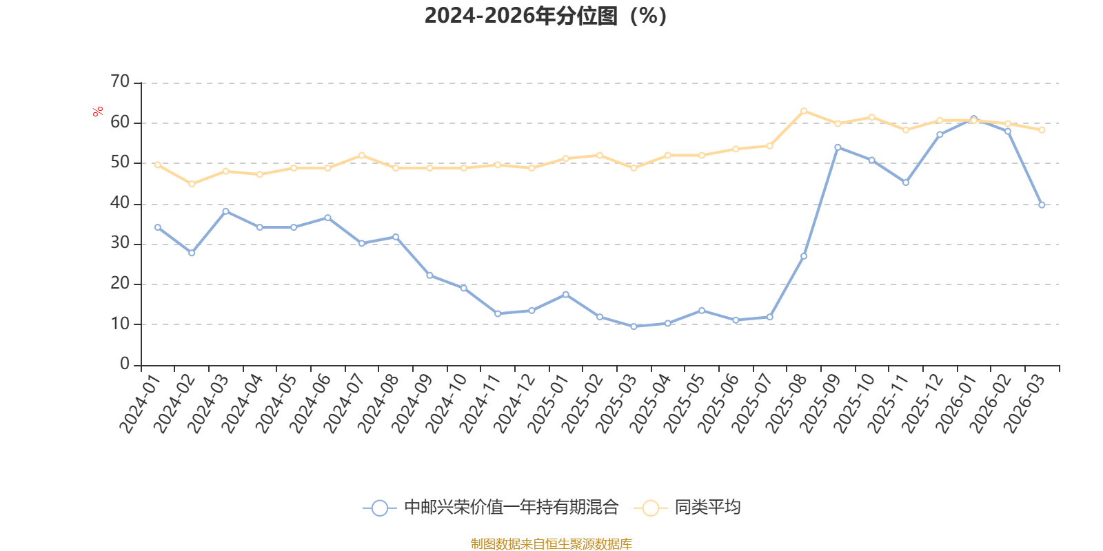 通过所选区间该基金净值增长率分位图,可以观察该基金与同类基金业绩比较情况。图为坐标原点到区间内某时点的净值增长率在同类基金中的分位数。
