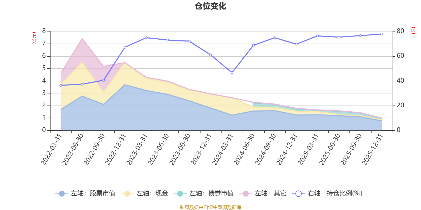据定期报告数据统计,近三年平均股票仓位为70.68%,同类平均为67.52%。2025年末基金达到77.94%的最高仓位,2022年一季度末最低,为36.45%。