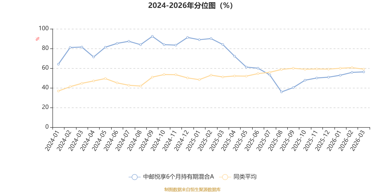 通过所选区间该基金净值增长率分位图,可以观察该基金与同类基金业绩比较情况。图为坐标原点到区间内某时点的净值增长率在同类基金中的分位数。