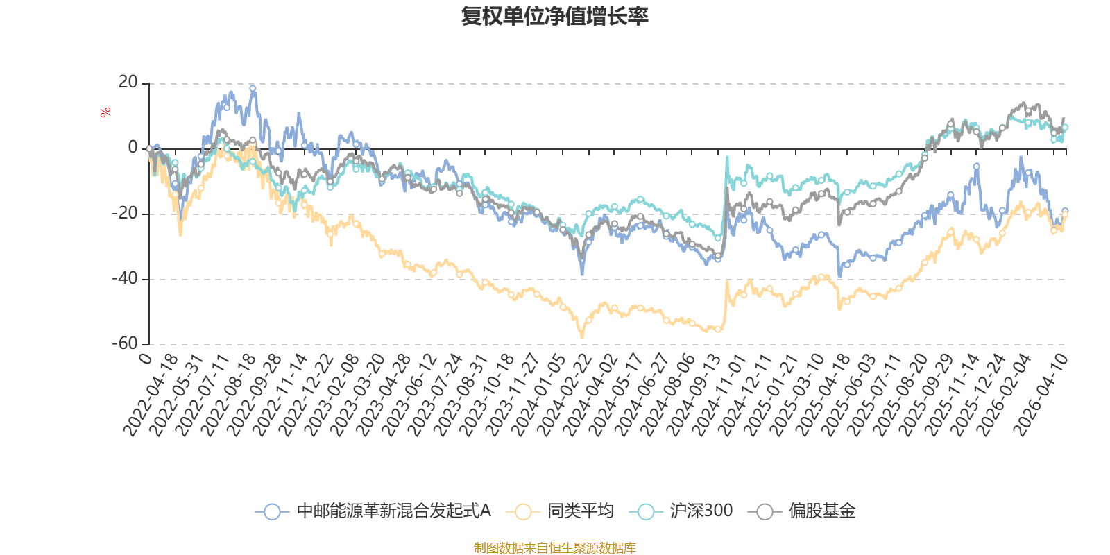 截至4月10日,中邮能源革新混合发起式A近三个月复权单位净值增长率为-7.44%,位于同类可比基金78/100;近半年复权单位净值增长率为-3.11%,位于同类可比基金79/100;近一年复权单位净值增长率为27.06%,位于同类可比基金83/99;近三年复权单位净值增长率为-12.07%,位于同类可比基金64/76。