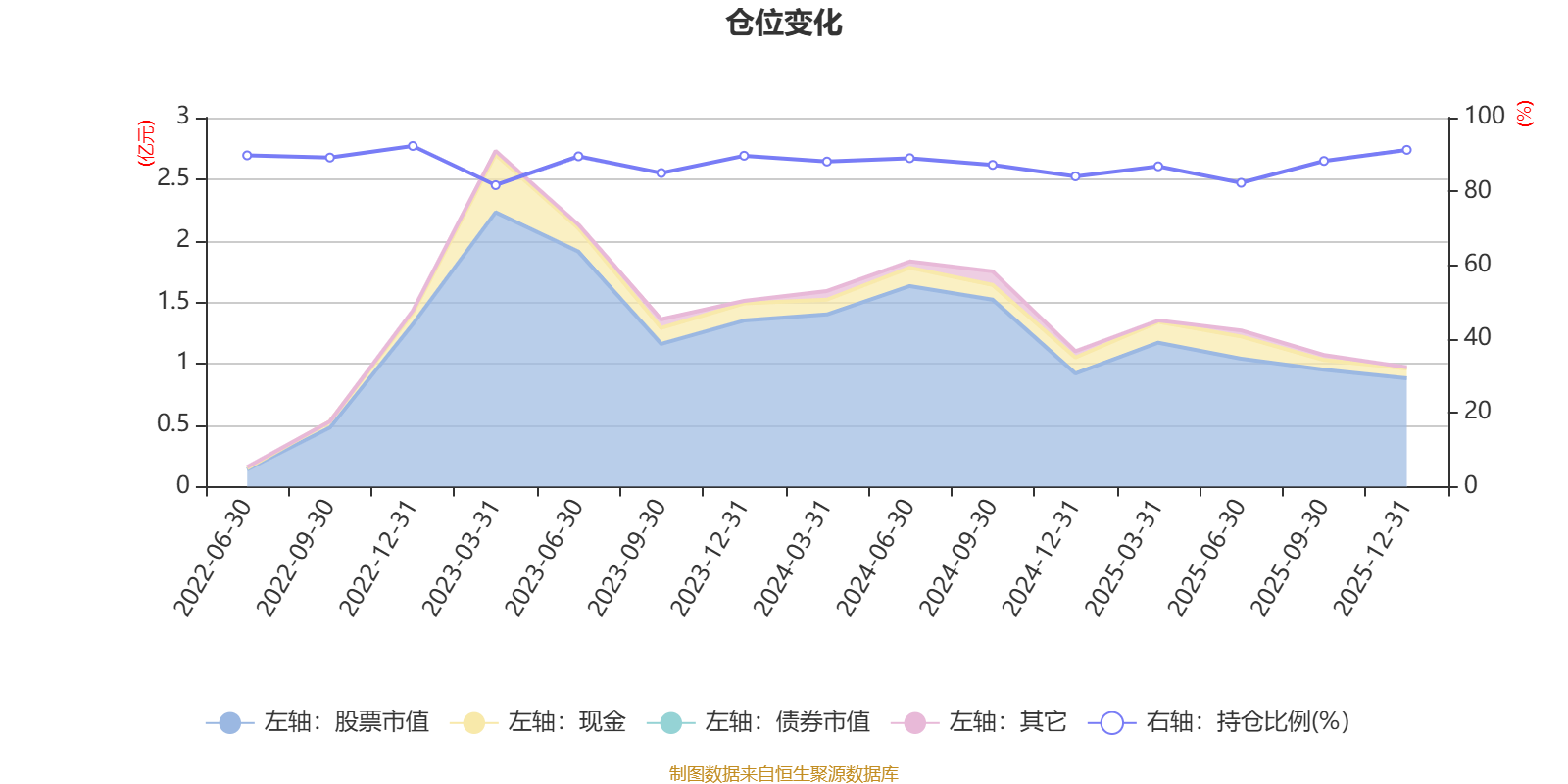据定期报告数据统计,近三年平均股票仓位为86.91%,同类平均为87.15%。2022年末基金达到92.31%的最高仓位,2023年一季度末最低,为81.69%。
