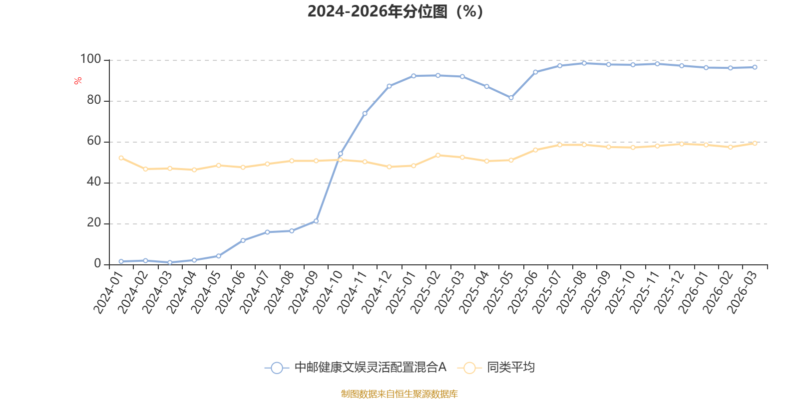 通过所选区间该基金净值增长率分位图,可以观察该基金与同类基金业绩比较情况。图为坐标原点到区间内某时点的净值增长率在同类基金中的分位数。