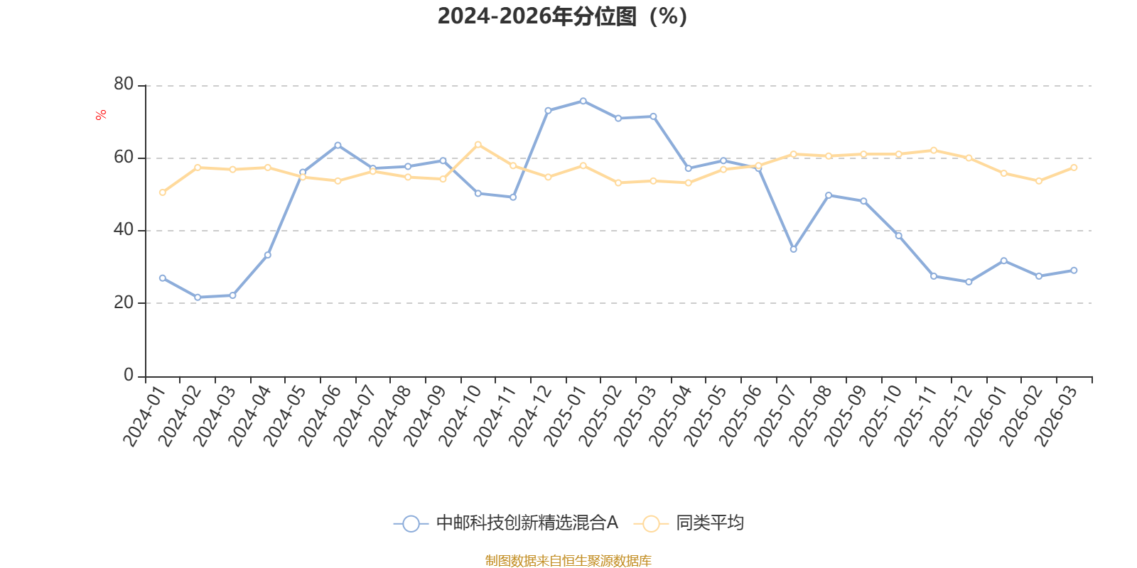 通过所选区间该基金净值增长率分位图,可以观察该基金与同类基金业绩比较情况。图为坐标原点到区间内某时点的净值增长率在同类基金中的分位数。