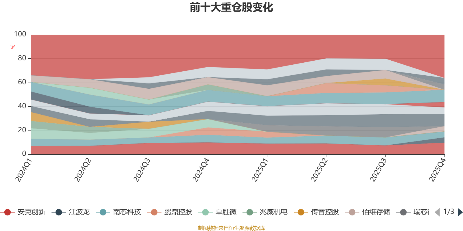 该基金持股集中度较高,近2年前十大重仓股集中度长期超过60%。截至2025年末,基金十大重仓股分别是立讯精密、兆易创新、安克创新、华勤技术、澜起科技、南芯科技、聚辰股份、佰维存储、北方华创、江波龙。