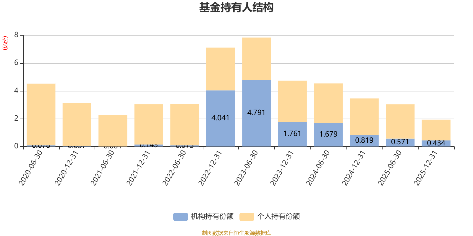 截至2025年12月31日,基金持有人共计1.24万户,合计持有1.93亿份。其中管理人员工持有48.37万份,占比0.25%,机构持有份额占比22.47%,个人投资者占比77.53%。