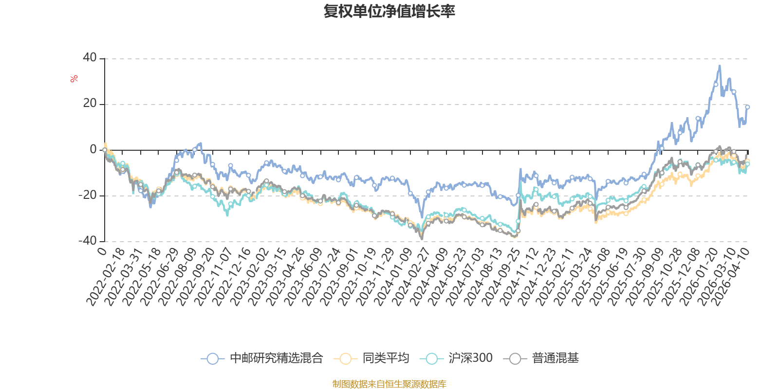 截至4月10日,中邮研究精选混合近三个月复权单位净值增长率为-4.26%,位于同类可比基金112/134;近半年复权单位净值增长率为8.33%,位于同类可比基金44/134;近一年复权单位净值增长率为45.44%,位于同类可比基金29/134;近三年复权单位净值增长率为29.70%,位于同类可比基金31/126。