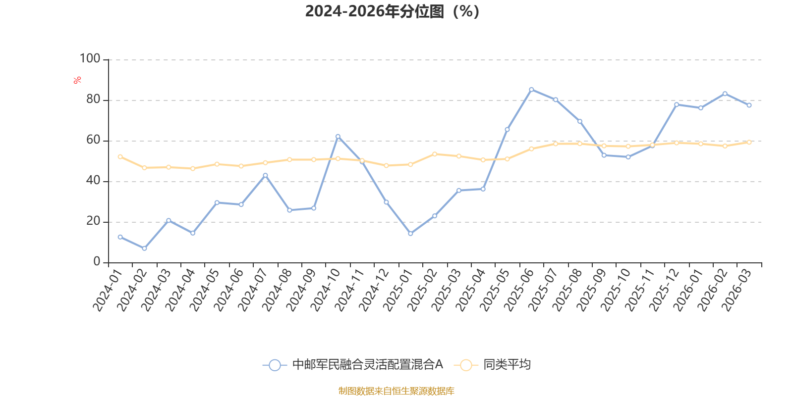 通过所选区间该基金净值增长率分位图,可以观察该基金与同类基金业绩比较情况。图为坐标原点到区间内某时点的净值增长率在同类基金中的分位数。