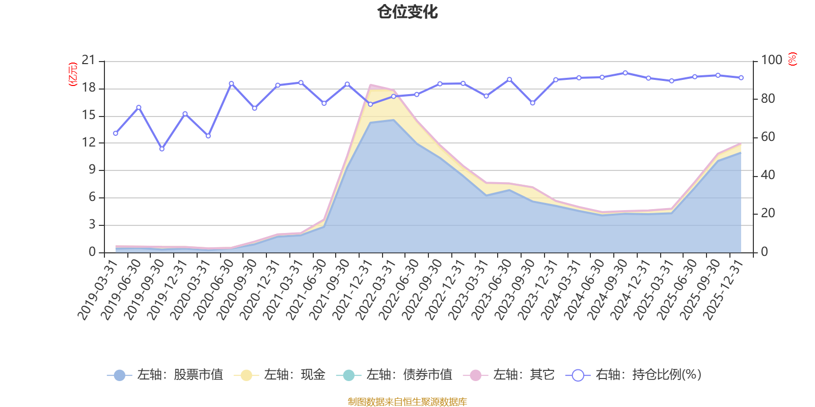 据定期报告数据统计,近三年平均股票仓位为89.47%,同类平均为72.57%。2024年三季度末基金达到93.84%的最高仓位,2019年三季度末最低,为54.15%。