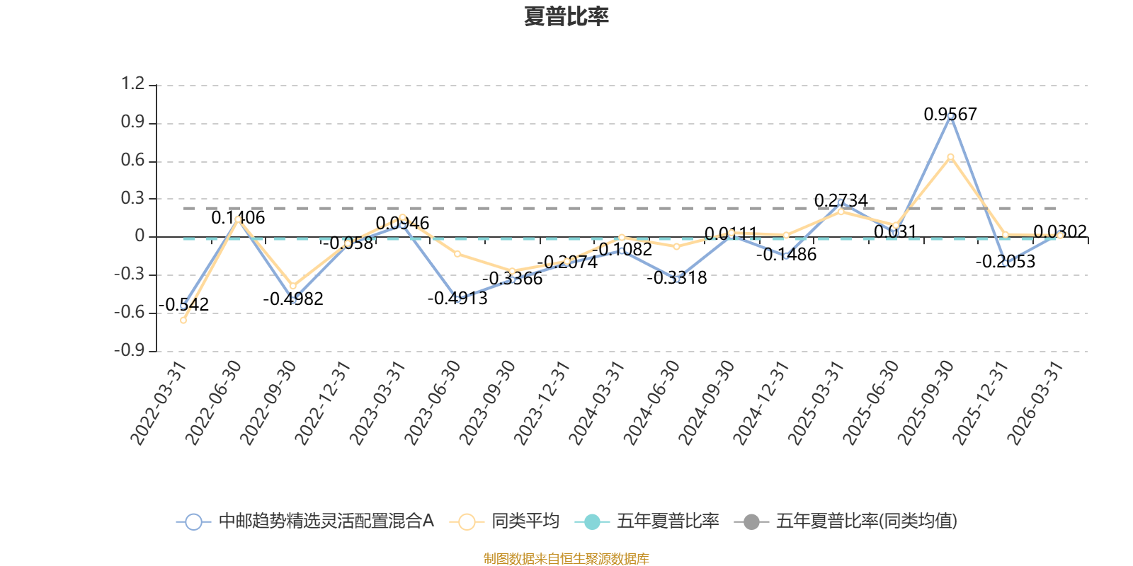 截至3月31日,基金近三年夏普比率为0.0419,位于同类可比基金1112/1274。