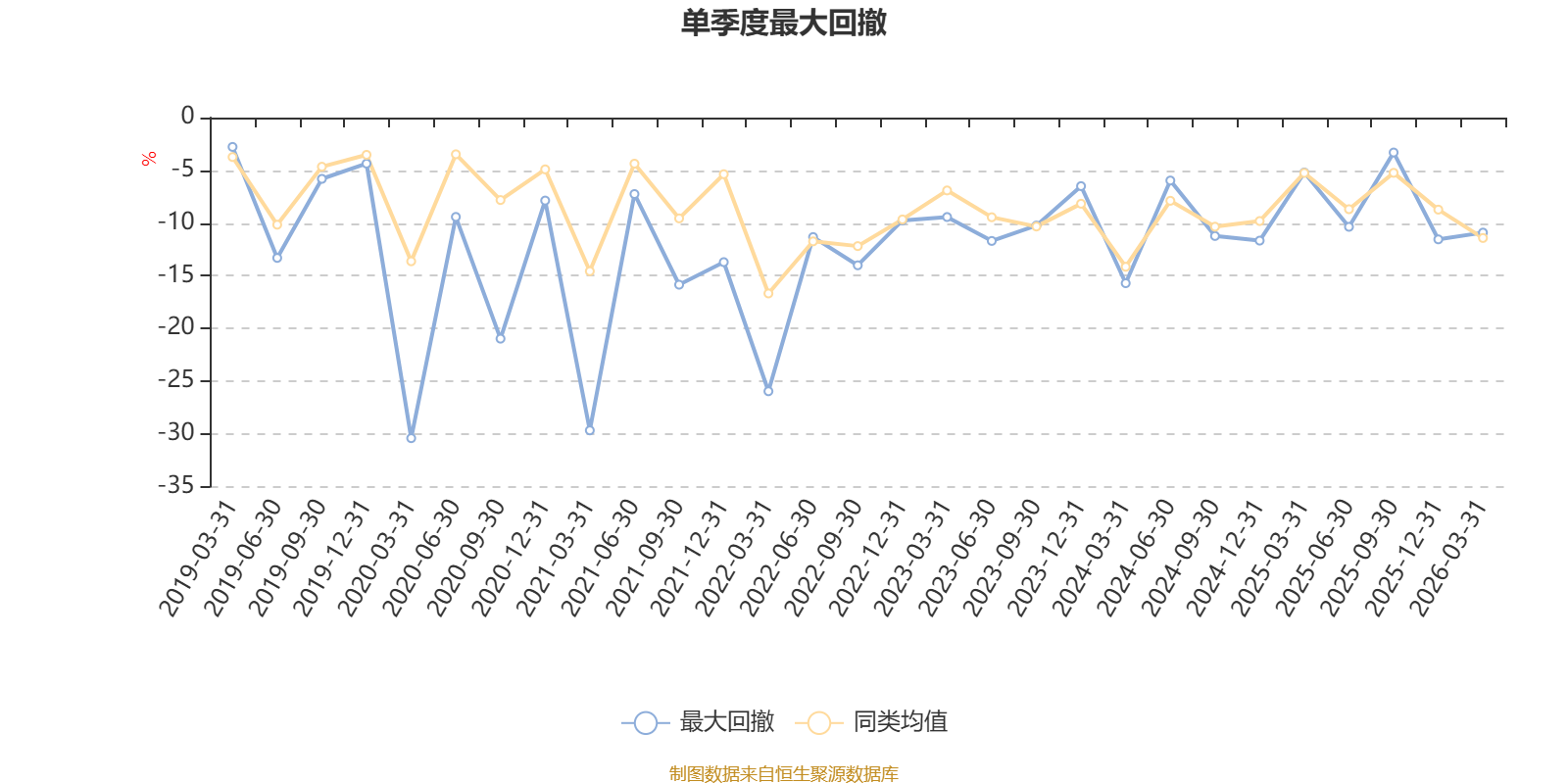 截至4月10日,基金近三年最大回撤为34.63%,同类可比基金排名802/1273。单季度最大回撤出现在2020年一季度,为30.41%。