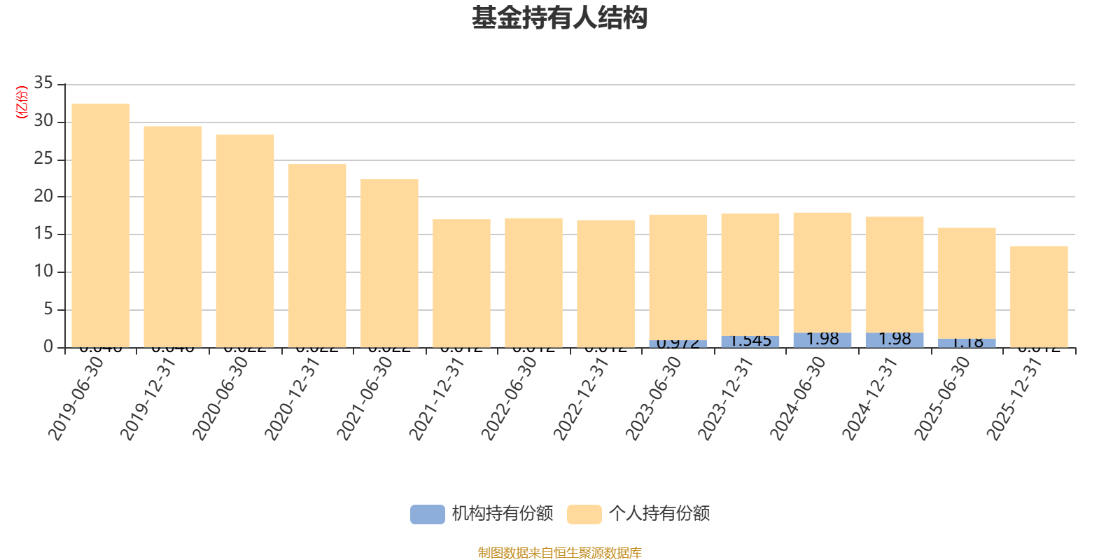 截至2025年12月31日,基金持有人共计3.28万户,合计持有13.46亿份。其中管理人员工持有51.7万份,占比0.04%,机构持有份额占比0.09%,个人投资者占比99.91%。