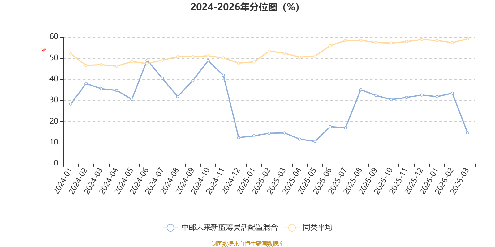 通过所选区间该基金净值增长率分位图,可以观察该基金与同类基金业绩比较情况。图为坐标原点到区间内某时点的净值增长率在同类基金中的分位数。