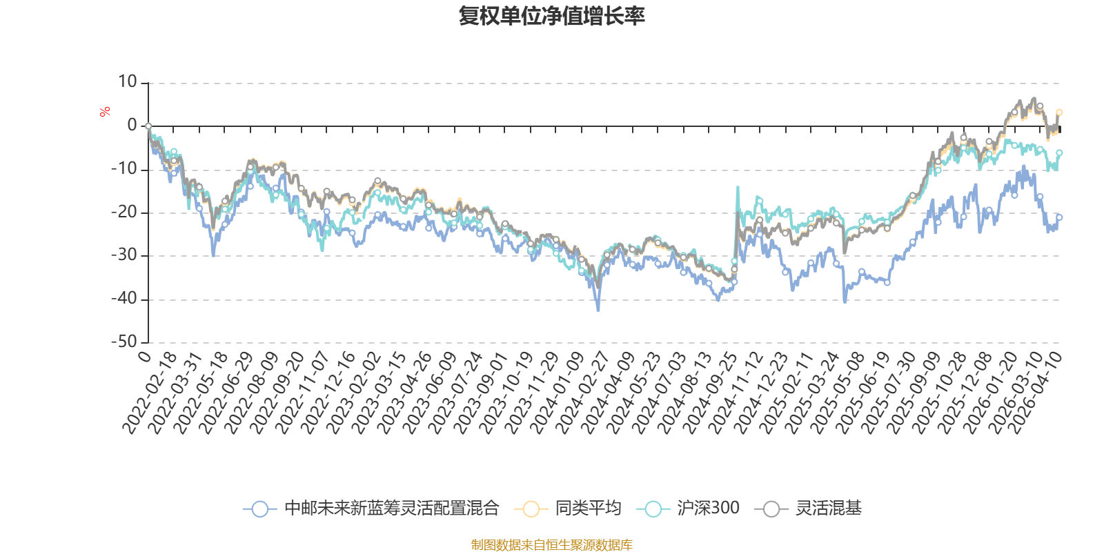 截至4月10日,中邮未来新蓝筹灵活配置混合近三个月复权单位净值增长率为-7.77%,位于同类可比基金1149/1287;近半年复权单位净值增长率为-2.67%,位于同类可比基金1071/1286;近一年复权单位净值增长率为26.70%,位于同类可比基金715/1286;近三年复权单位净值增长率为1.41%,位于同类可比基金971/1286。