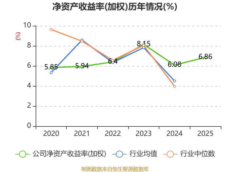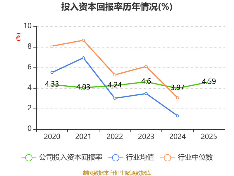 数据显示,2025年公司加权平均净资产收益率为6.86%,较上年同期上升0.78个百分点。公司2025年投入资本回报率为4.59%,较上年同期上升0.62个百分点。