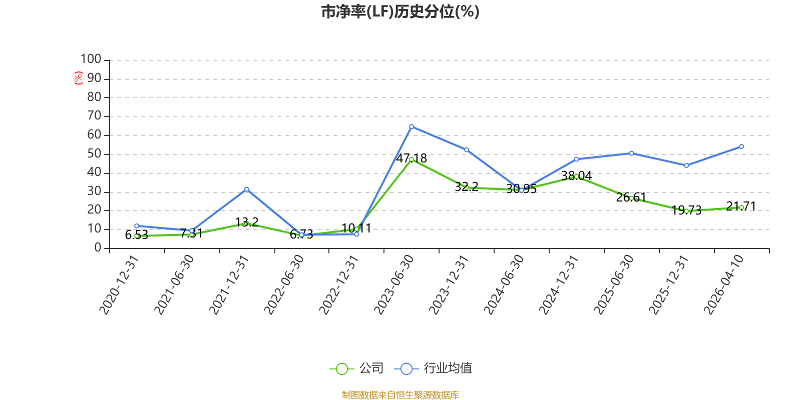 市盈率、市净率为负时,不显示当期分位数,会导致折线图中断。
