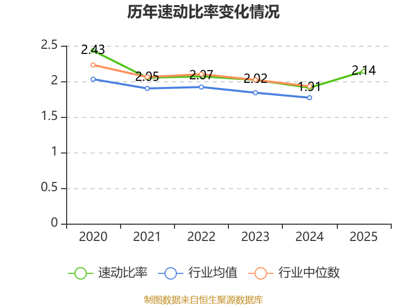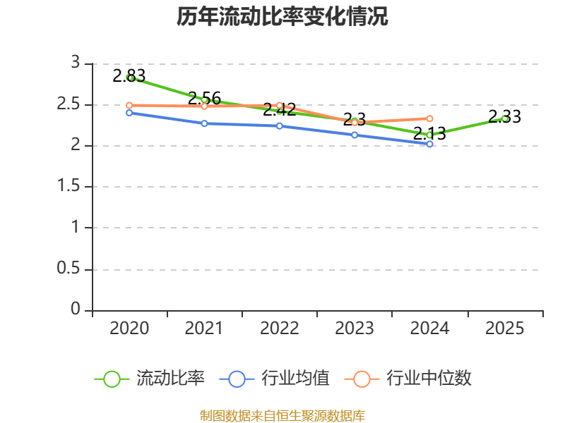 2025年,公司流动比率为2.33,速动比率为2.14。