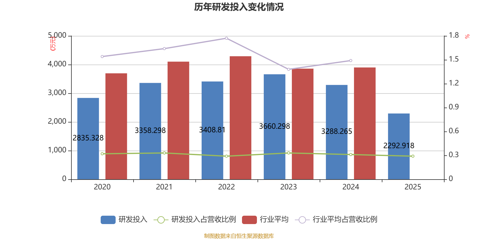 2025年全年,公司研发投入金额为2292.92万元,同比下降30.27%;研发投入占营业收入比例为0.29%,相比上年同期下降0.02个百分点。此外,公司全年研发投入资本化率为0%。