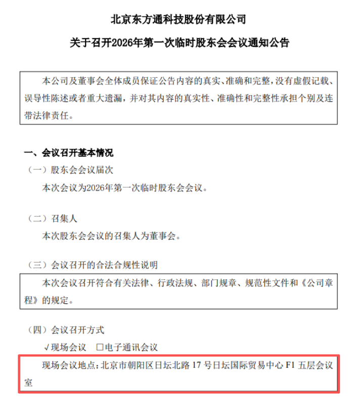 据安瑞升的投资总监蔡宁介绍,东方通公告的股东会地点为北京市朝阳区日坛北路17号日坛国际贸易中心F1五层会议室,但该地址在地图、物业登记中均无法查询,其同事提前两日专程前往寻找,询问物业、保安、保洁人员,均无人知晓该会议室。