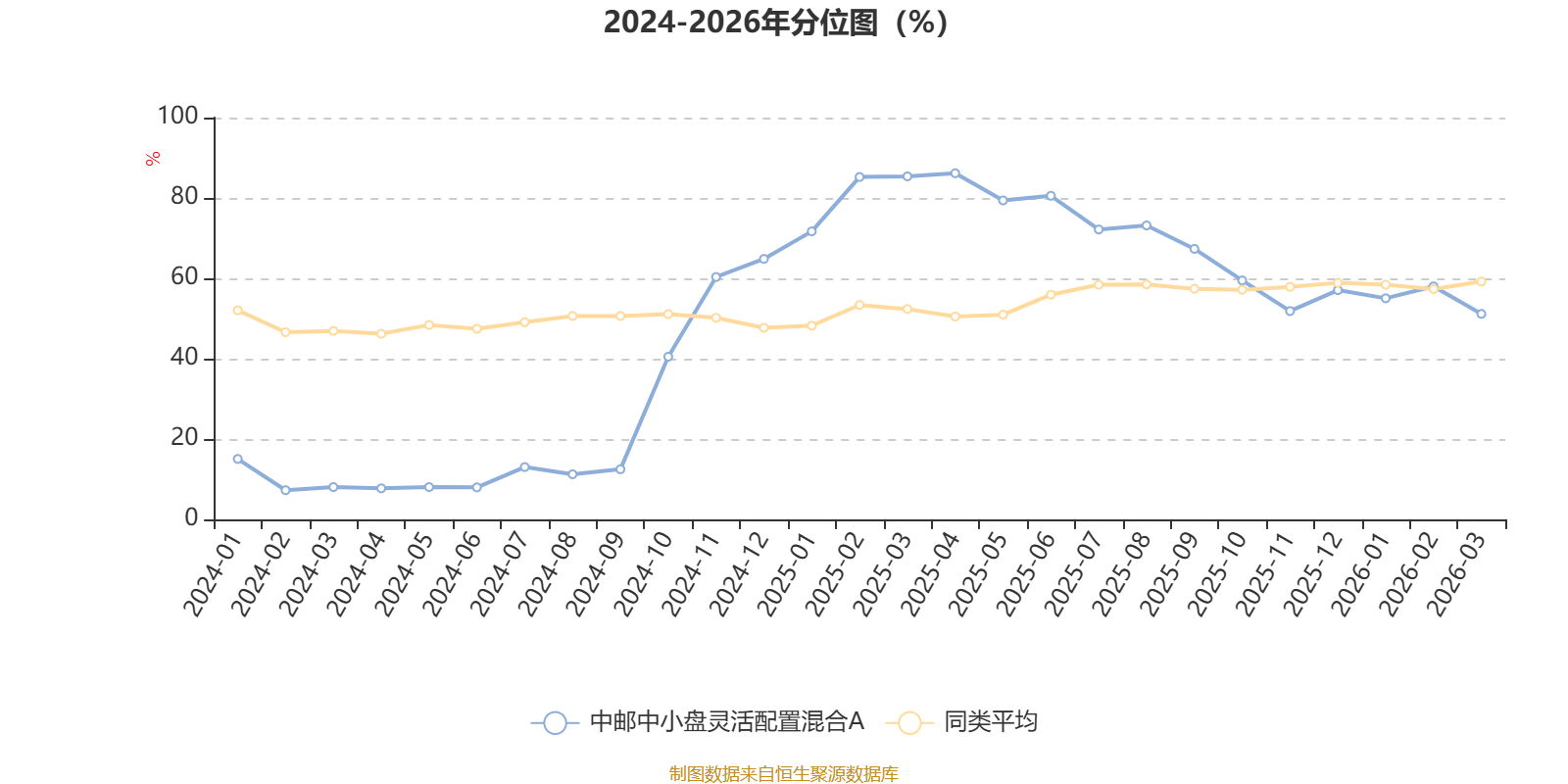 通过所选区间该基金净值增长率分位图,可以观察该基金与同类基金业绩比较情况。图为坐标原点到区间内某时点的净值增长率在同类基金中的分位数。