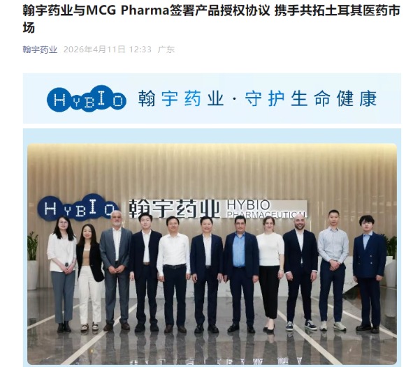 翰宇药业与MCG Pharma签署产品授权协议 共拓土耳其医药市场