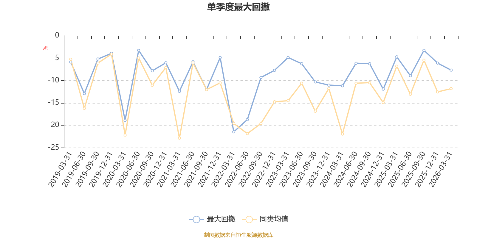 截至4月9日,基金近三年最大回撤为24.66%,同类可比基金排名0/32。单季度最大回撤出现在2022年一季度,为21.46%。