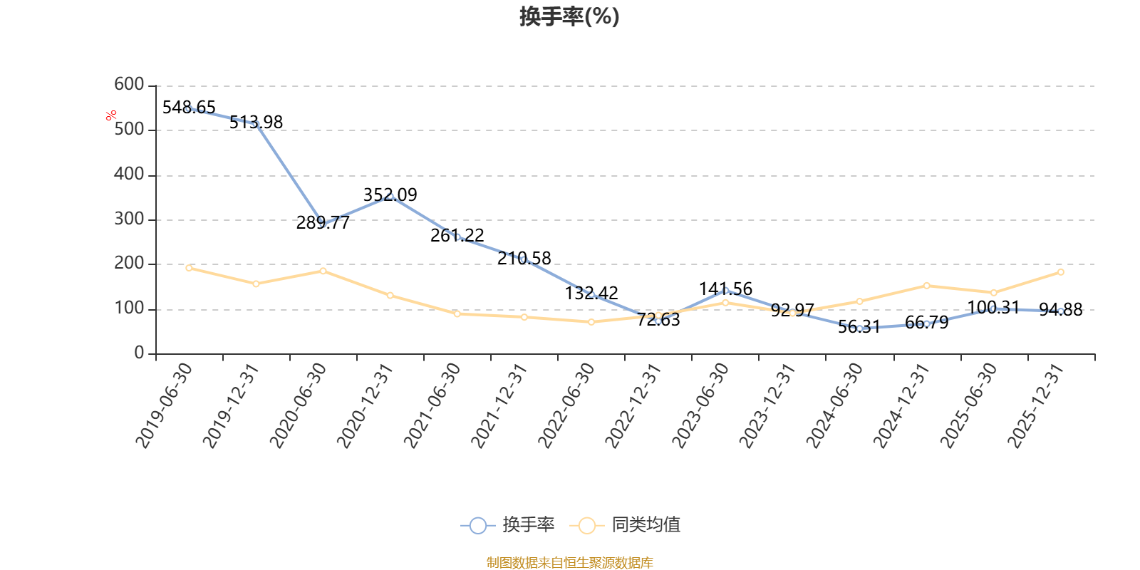 截至2025年12月31日,基金最近一年换手率约186.12%,持续2年低于同类均值。