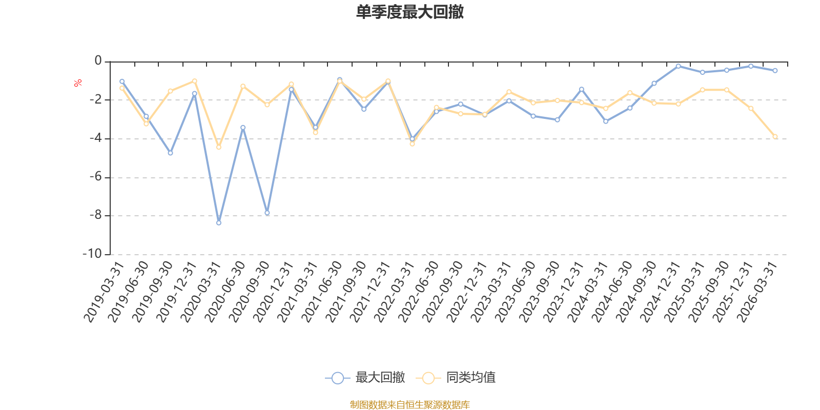 截至4月9日,基金近三年最大回撤为8.46%,同类可比基金排名107/143。单季度最大回撤出现在2020年一季度,为8.36%。