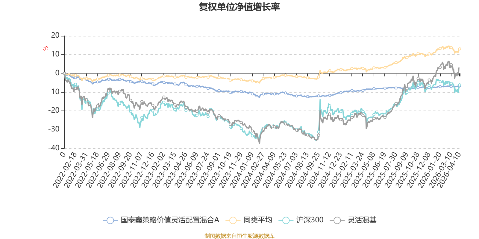 截至4月10日,国泰鑫策略价值灵活配置混合A近三个月复权单位净值增长率为0.76%,位于同类可比基金54/155;近半年复权单位净值增长率为1.51%,位于同类可比基金88/155;近一年复权单位净值增长率为2.02%,位于同类可比基金144/155;近三年复权单位净值增长率为-1.76%,位于同类可比基金150/155。
