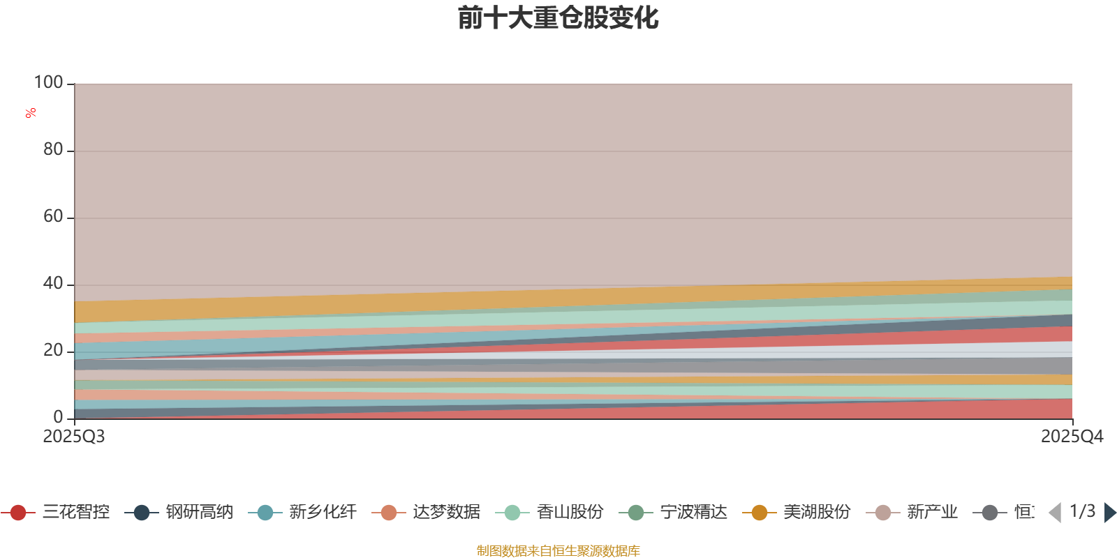 截至2025年末,基金十大重仓股分别是三花智控、恒立液压、拓普集团、新泉股份、纳思达、香山股份、中航光电、星宇股份、三利谱、美湖股份。