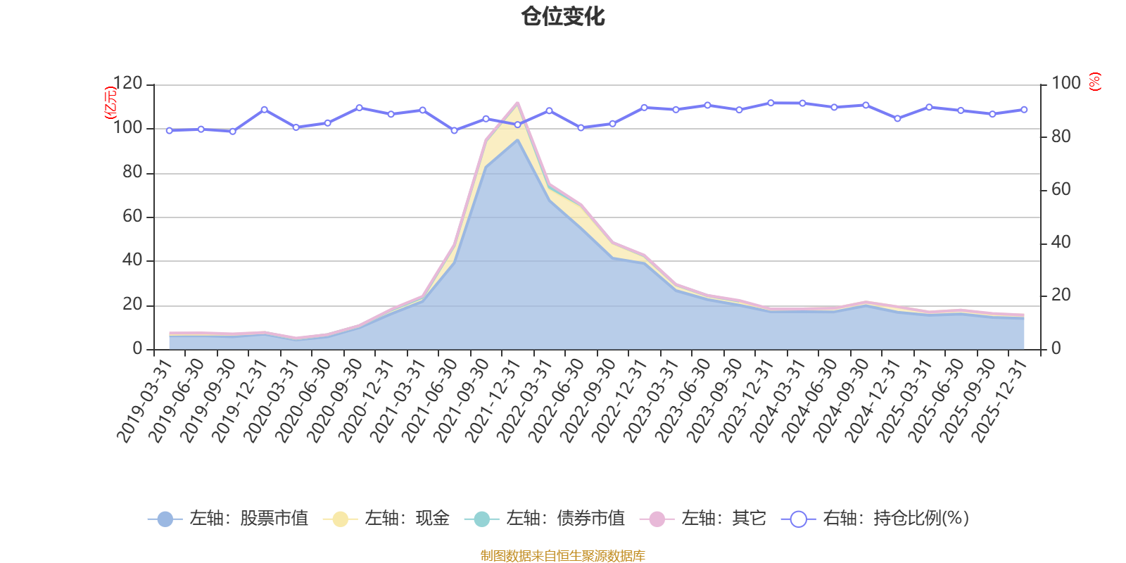 据定期报告数据统计,近三年平均股票仓位为90.9%,同类平均为88.6%。2023年末基金达到93.06%的最高仓位,2019年三季度末最低,为82.26%。