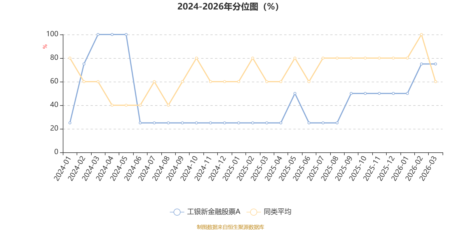通过所选区间该基金净值增长率分位图,可以观察该基金与同类基金业绩比较情况。图为坐标原点到区间内某时点的净值增长率在同类基金中的分位数。