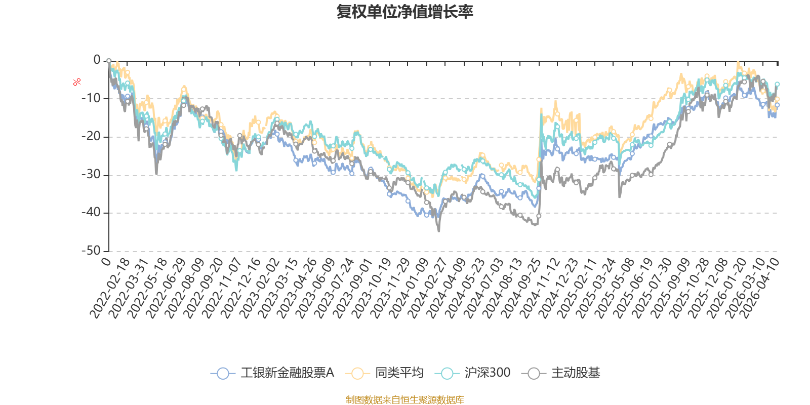 截至4月10日,工银新金融股票A近三个月复权单位净值增长率为-4.60%,位于同类可比基金2/6;近半年复权单位净值增长率为0.03%,位于同类可比基金2/6;近一年复权单位净值增长率为22.51%,位于同类可比基金1/6;近三年复权单位净值增长率为17.74%,位于同类可比基金3/5。