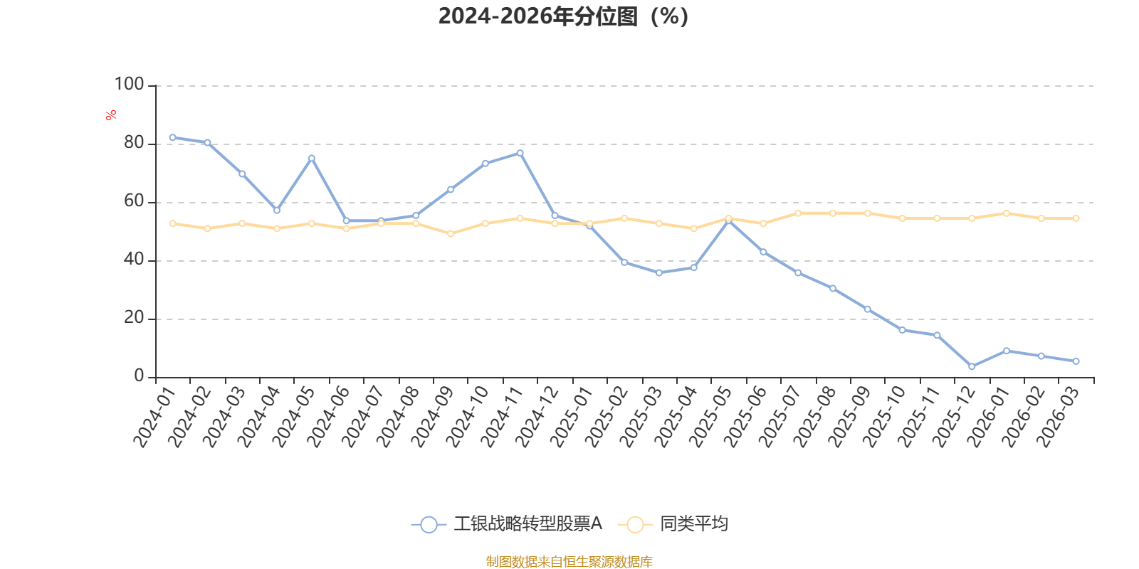 通过所选区间该基金净值增长率分位图,可以观察该基金与同类基金业绩比较情况。图为坐标原点到区间内某时点的净值增长率在同类基金中的分位数。
