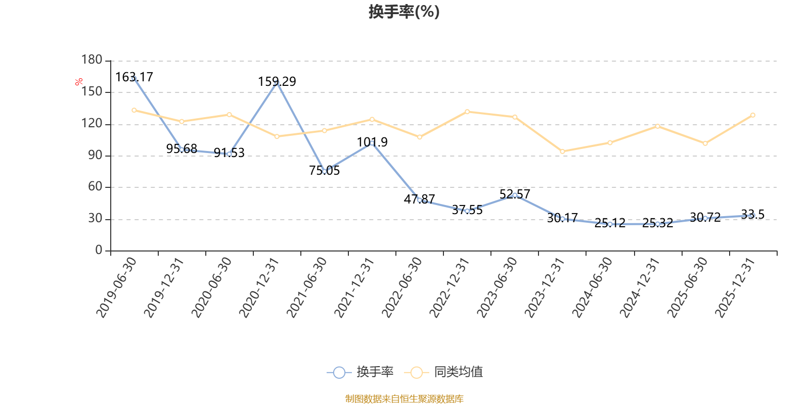 截至2025年12月31日,基金最近一年换手率约64.57%,持续5年低于同类均值。