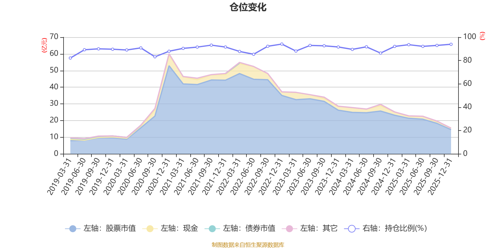 据定期报告数据统计,近三年平均股票仓位为91.48%,同类平均为88.64%。2022年末基金达到94.13%的最高仓位,2019年一季度末最低,为82.15%。