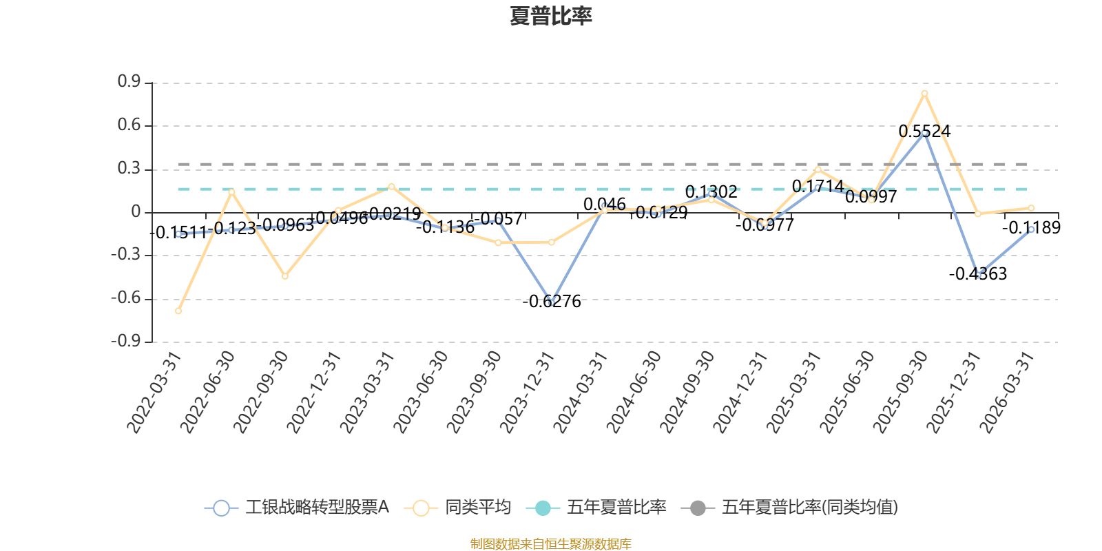 截至3月31日,基金近三年夏普比率为0.114,位于同类可比基金55/57。