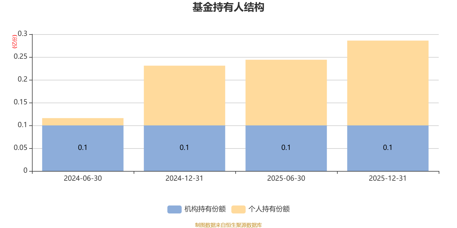 截至2025年12月31日,基金持有人共计3250户,合计持有2863.89万份。其中管理人员工持有13.2万份,占比0.46%,机构持有份额占比34.92%,个人投资者占比65.08%。