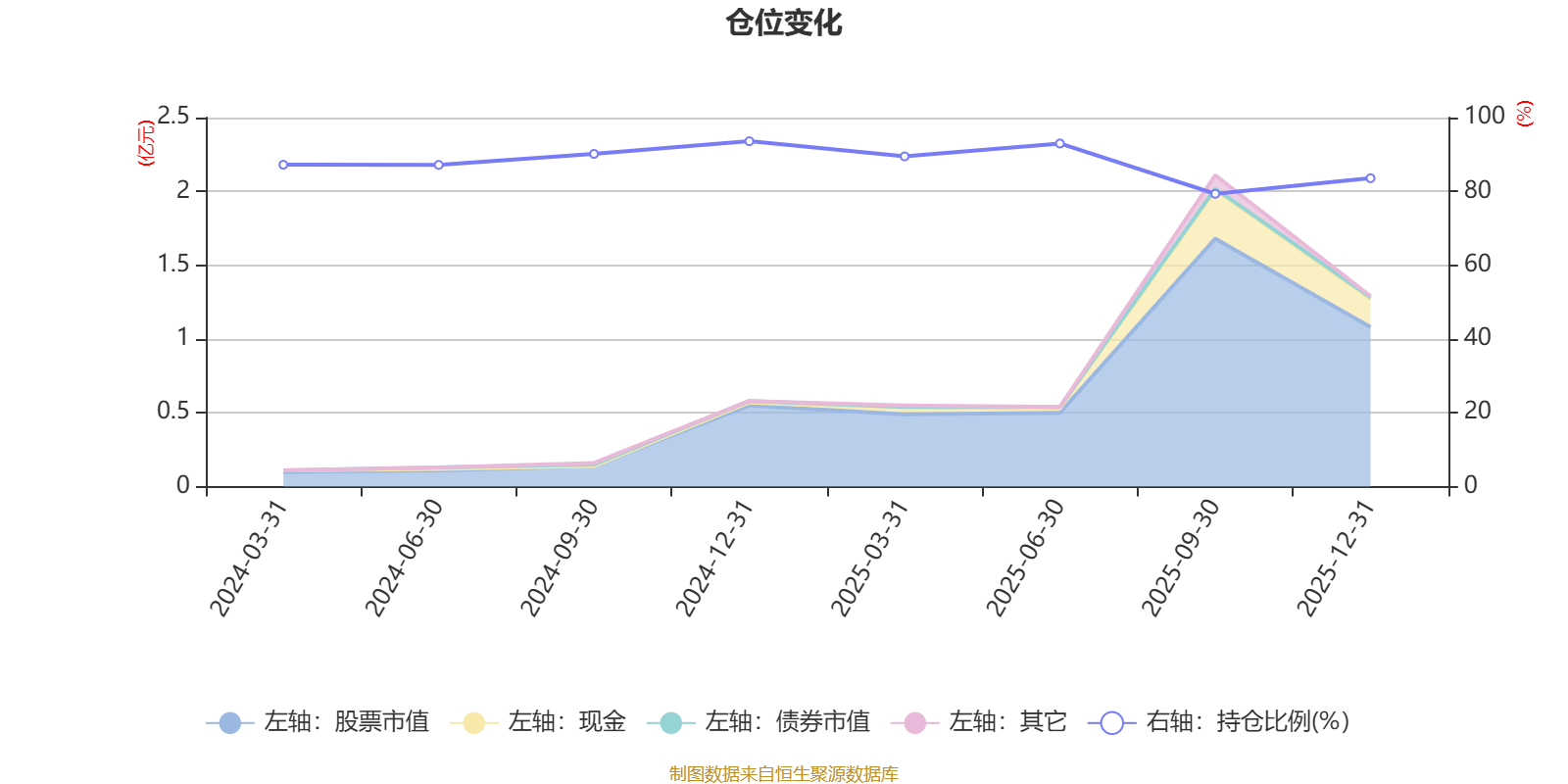 据定期报告数据统计,成立以来平均股票仓位为87.95%,同类平均为88.36%。2024年末基金达到93.6%的最高仓位,2025年三季度末最低,为79.35%。