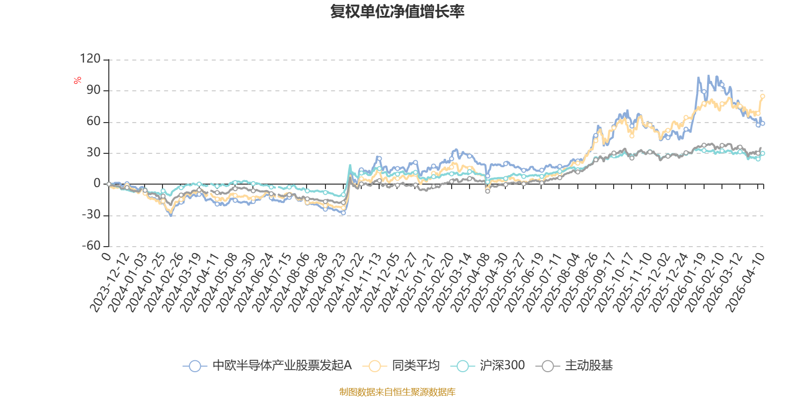 截至4月10日,中欧半导体产业股票发起A近三个月复权单位净值增长率为-15.26%,位于同类可比基金61/63;近半年复权单位净值增长率为-2.59%,位于同类可比基金53/63;近一年复权单位净值增长率为38.89%,位于同类可比基金49/63。