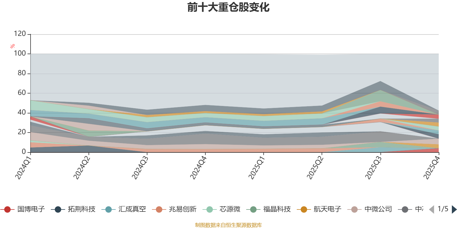 截至2025年末,基金十大重仓股分别是中微公司、中国卫通、中国卫星、信维通信、乾照光电、国博电子、上海瀚讯、航天电子、航天动力、臻镭科技。
