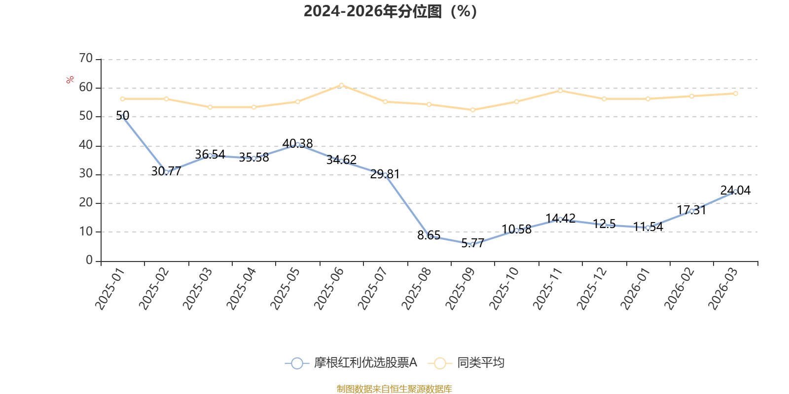 通过所选区间该基金净值增长率分位图,可以观察该基金与同类基金业绩比较情况。图为坐标原点到区间内某时点的净值增长率在同类基金中的分位数。