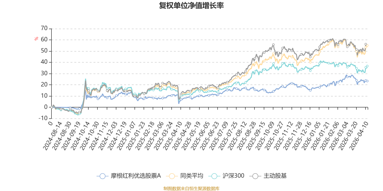 截至4月10日,摩根红利优选股票A近三个月复权单位净值增长率为3.39%,位于同类可比基金36/121;近半年复权单位净值增长率为7.13%,位于同类可比基金66/121;近一年复权单位净值增长率为15.29%,位于同类可比基金99/120。