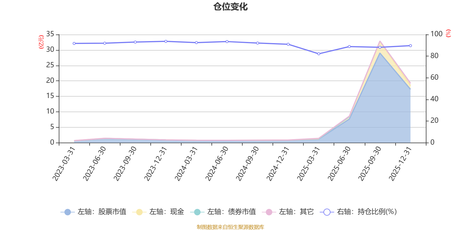 据定期报告数据统计,近三年平均股票仓位为90.7%,同类平均为87.73%。2023年末基金达到93.67%的最高仓位,2025年一季度末最低,为82.18%。