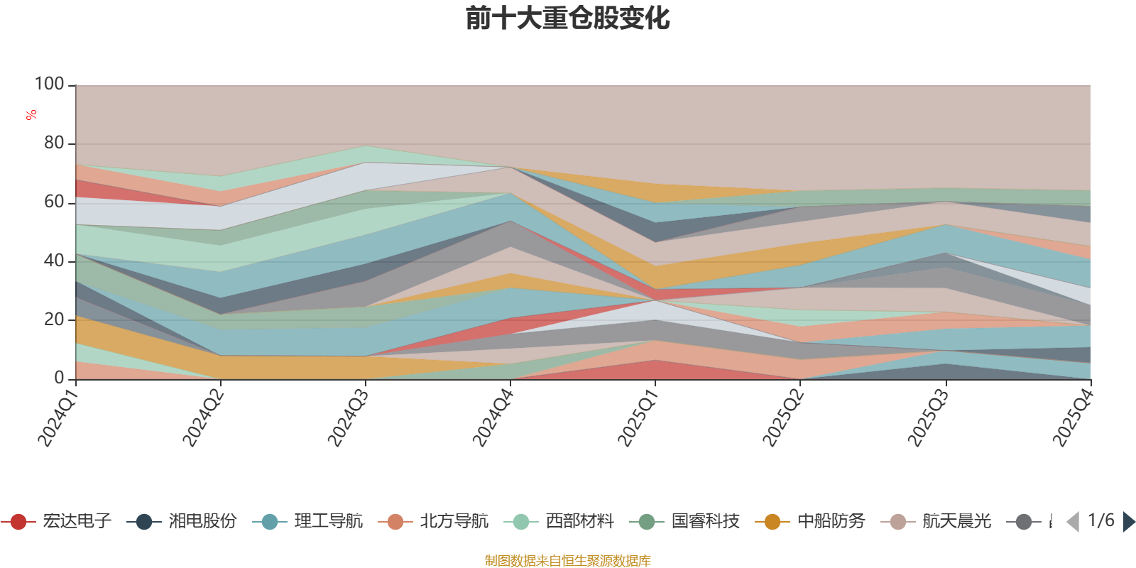 该基金持股集中度较高,近2年前十大重仓股集中度长期超过60%。截至2025年末,基金十大重仓股分别是中航沈飞、洪都航空、中航西飞、航发动力、航宇科技、广东宏大、理工导航、长盈通、国科军工、航发科技。