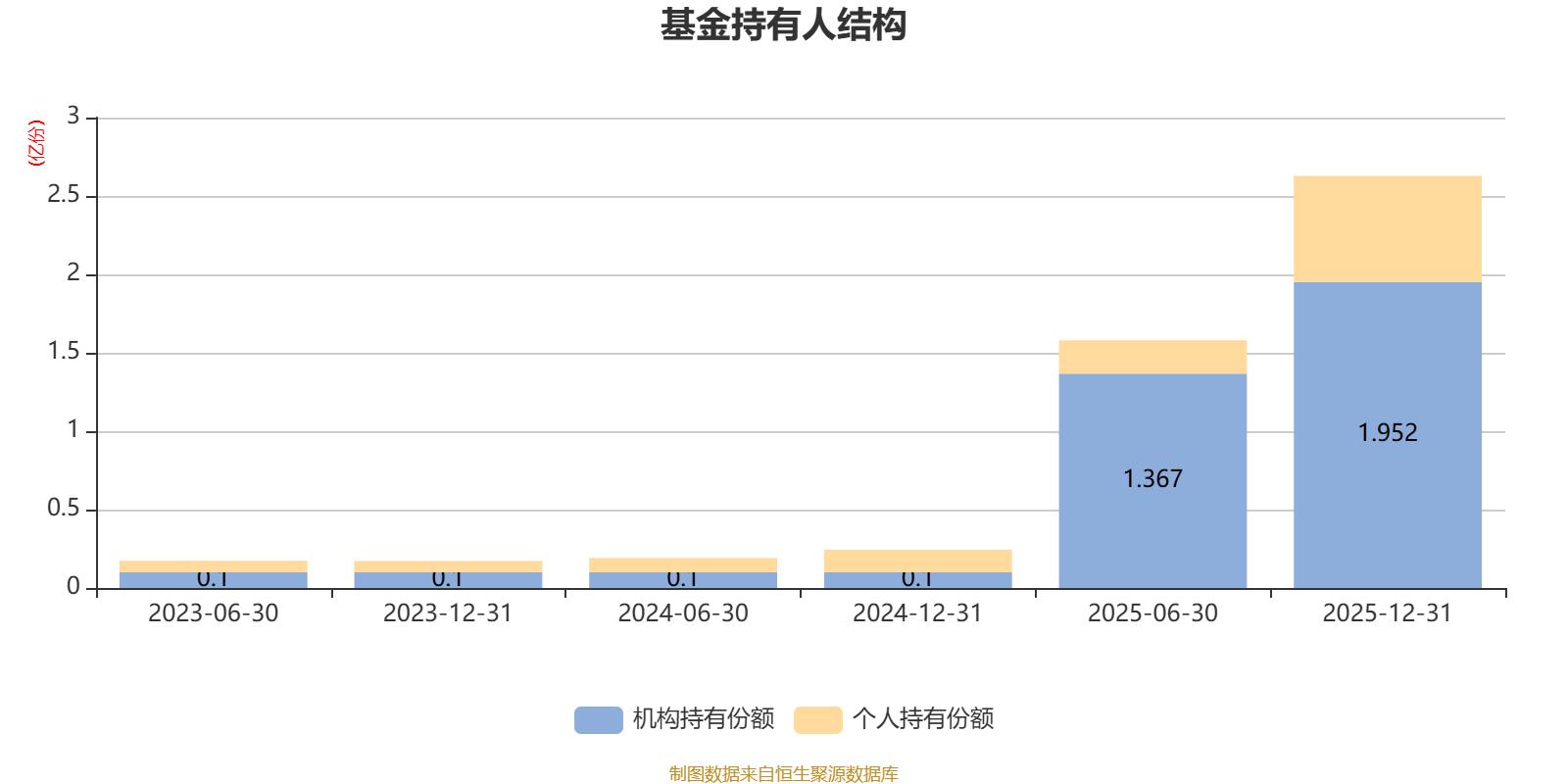 截至2025年12月31日,基金持有人共计6167户,合计持有2.63亿份。其中管理人员工持有132.73万份,占比0.51%,机构持有份额占比74.29%,个人投资者占比25.71%。
