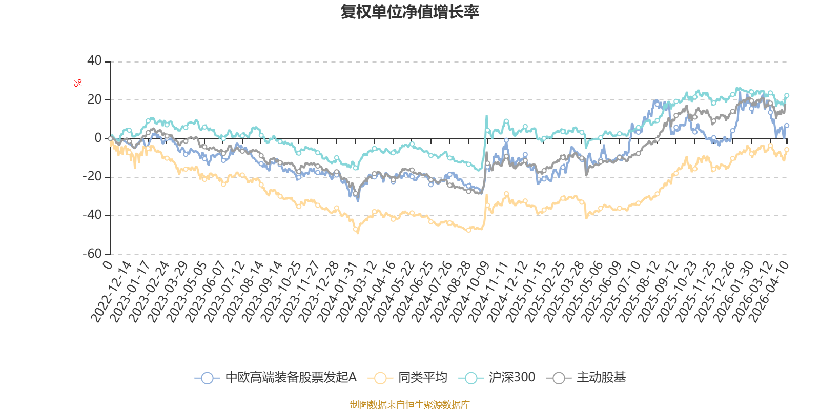 截至4月10日,中欧高端装备股票发起A近三个月复权单位净值增长率为-10.34%,位于同类可比基金35/39;近半年复权单位净值增长率为-3.44%,位于同类可比基金33/39;近一年复权单位净值增长率为17.33%,位于同类可比基金39/39;近三年复权单位净值增长率为13.25%,位于同类可比基金21/33。