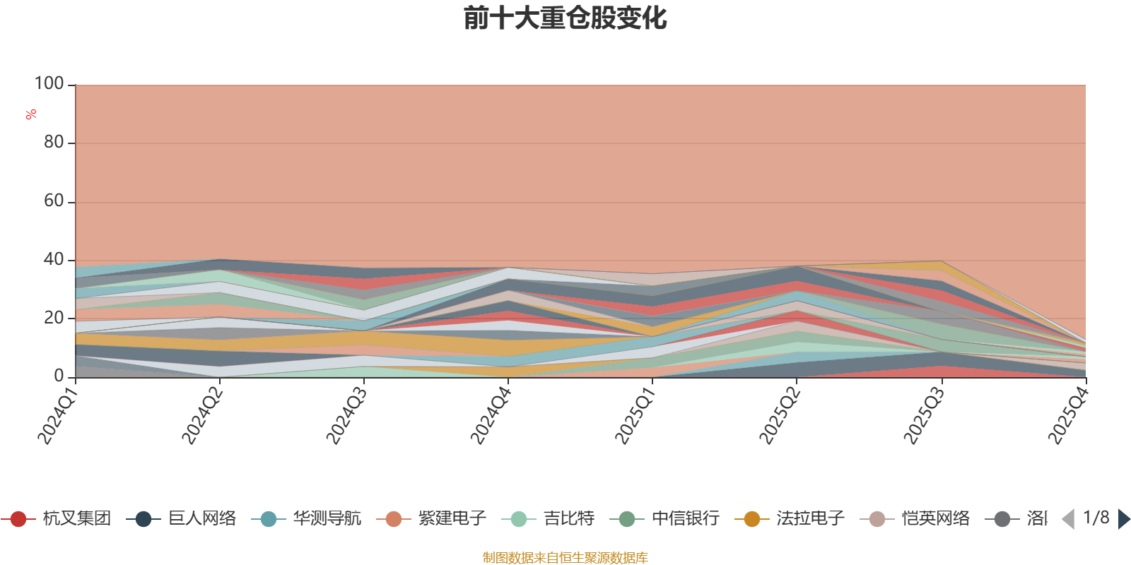 截至2025年末,基金十大重仓股分别是恺英网络、巨人网络、中国太保、中国人寿、中国平安、中航西飞、中航沈飞、中国船舶、航发动力、菲利华。