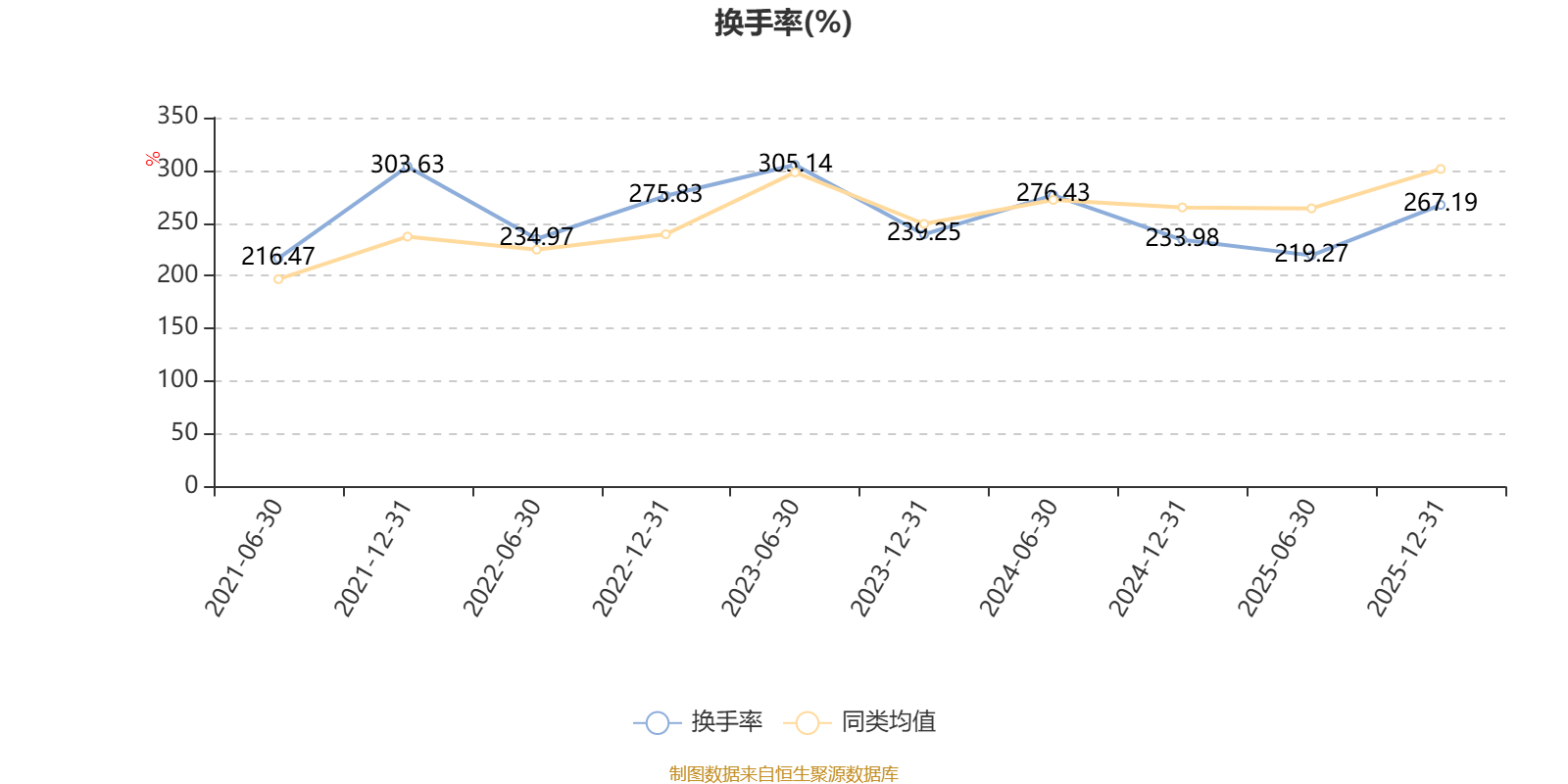 截至2025年12月31日,基金最近一年换手率约485.78%,持续1年低于同类均值。